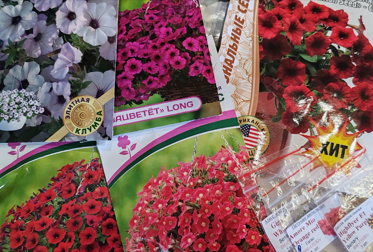 Главные героини моих будущих цветников— ампельные петунии серии Tidal Wave. Я выращиваю их уже третий год, и они полностью оправдывают свое название «Приливная волна»: мощные, обильноцветущие, создающие настоящие водопады из цветов. В этом году первой партией посеяла два проверенных цвета: сочный Tidal Wave Cherry и изысканный Tidal Wave Silver.Я с нетерпением жду посылку с семенами Tidal Wave Red Velour — тогда коллекция будет полной. О моем опыте выращивания этой серии я уже подробно писала (смотрите ссылку в конце статьи) .