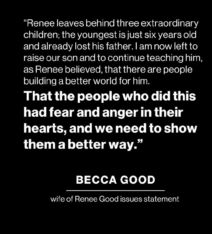 Renee ‘lived by an overarching belief: there is kindness in the world’ — Becca Good, wife of Renee Good, gunned down by an ICE agent