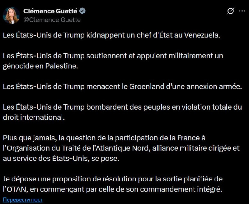 🇫🇷 Франция грозит выходом из НАТО: вице-спикер обвинил США в агрессии и нарушении международного права