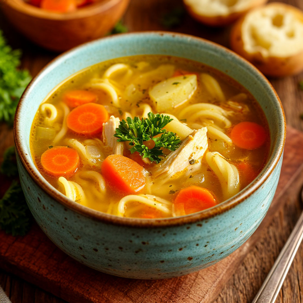 Классический куриный суп с вермишелью — это не просто блюдо, а тёплый привет из детства. Простота приготовления, насыщенный вкус и аромат домашней кухни делают его идеальным выбором для семейного обеда. Ингредиенты (на 4 порции): Время приготовления: 1 час 10 минут. Пошаговый рецепт: Советы и лайфхаки: 👉 Сохраните рецепт — он точно пригодится для уютного семейного обеда! 🔥 Поделитесь с друзьями — пусть и у них будет вкусный и полезный суп! 🔔 Подписывайтесь на наш канал — каждый день новые проверенные рецепты, которые станут вашими любимыми!