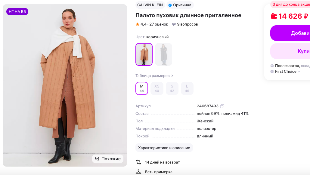 Приятный шоколадный оттенок — универсальный выбор (и, как ни странно, отлично дружит с любым оттенком волос!). На плечи садится безупречно — между прочим, редкость на массовом рынке.
