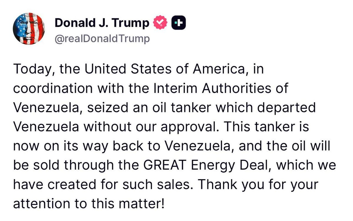 US seized oil tanker ‘in coordination’ with Venezuela — Trump