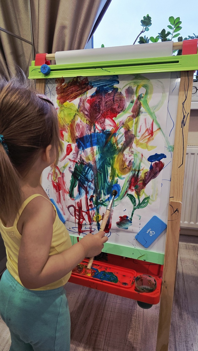 ? Вчера поднимали тему физического развития, и мне так отозвалось ваше участие, что захотелось не просто дать пятиминутки, а прямо разобрать тему подробнее, на основе ваших откликов. За выходные планирую доделать🙂 А пока поделюсь одной находкой, которая стала настоящим новогодним подарком для нашей 2-летки. Это Мольберт! У нас «Маленький художник» от Hape. С одной стороны — поверхность для маркеров (магнитная), с другой — для мелков. И плюс к этому — крепление для рулона бумаги с резаком. Я долго сомневалась: он не маленький, стоит ощутимо, занимает место. Но если честно — это одна из тех покупок, о которых я не пожалела ни на секунду. Творчество у нас — ежедневная активность, и рулон бумаги даёт ребёнку тот самый простор, которого не хватает в обычном альбоме. Свобода, спонтанность, игра.🔥 Так что если вы думаете, нужен ли мольберт, возможно, это именно тот случай, когда «да» (на маркетплейсах их большое разнообразие). Даже если он немного мешает проходу к шкафу 😄😂 Пост доб