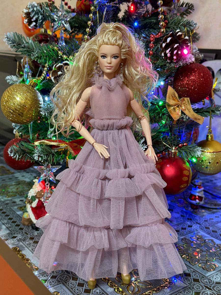 Дорогие друзья, после фотосессии своих красавиц у ёлки я поняла, что в компании смугляночек не хватает светленькой девочки. Поэтому к нам приехала Виктория)) Бывшая хозяйка сделала ей завивку и нарядила в праздничное платье: