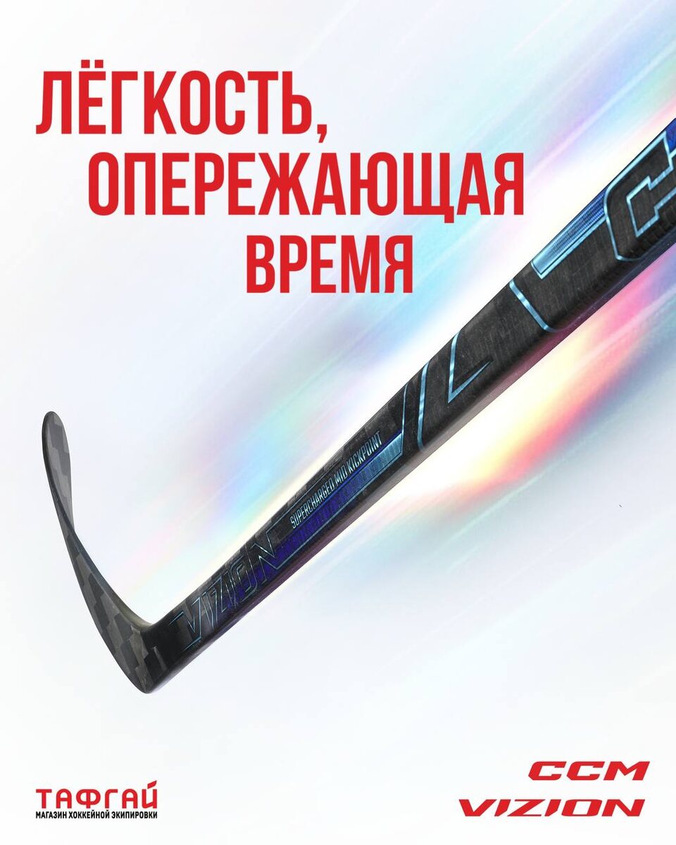 Забудьте о стандартных бросках. VIZION - это клюшка, созданная для одной цели: превратить вашу энергию в неудержимую мощь. Как работает это ускорение? Усиленный прогиб «Supercharged Mid Kickpoint» - как заряженная пружина для вашего кистевого броска. Крюк EVO 2 - передаёт энергию шайбе без потерь. Плетение SIGMATEX ST2X и технология Alupli - делают клюшку прочной и долговечной. Если вы хотите, чтобы ваши броски были мощнее, а клюшка служила дольше - Vizion ваш выбор. Испытайте новую мощь. Клюшка CCM VIZION в «Тафгай» ! #тафгай_выбор_сильных #CCM