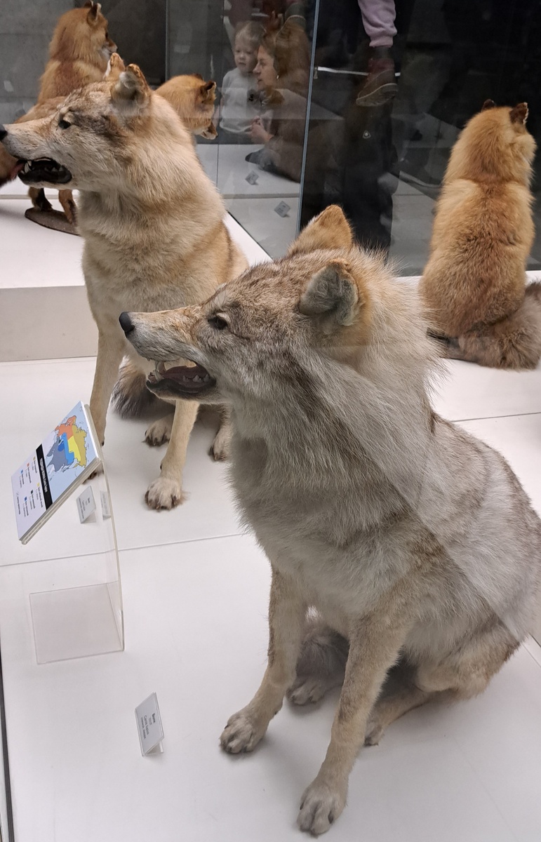 Второй этаж. Две большие выставки. Одна посвящена этапам изучения живой природы. На стендах рассказывается о том , какие открытия,когда и кем были сделаны. От античности до наших дней. Особое внимание уделено Эпохе Возрождения, когда произошел подъем науки и развитие различных отраслей биологии. Производство первого микроскопа и дальнейшие открытия связанные с ним. Особое место отведено теориям Чарльза Дарвина, Менделя, Вавилова и других. И второй зал - Микроэволюции. Исследование изменчивости вида. Представлены несколько особей для примера, что абсолютно одинаковых животных нет ни в одном виде. Что так же может быть связано ещё и с возрастом, полом, средой обитания и т.д. Любопытным показалась демонстрация охоты волков на лося и битвы оленей. Получились вполне батальные сцены как с полотен великих художников .