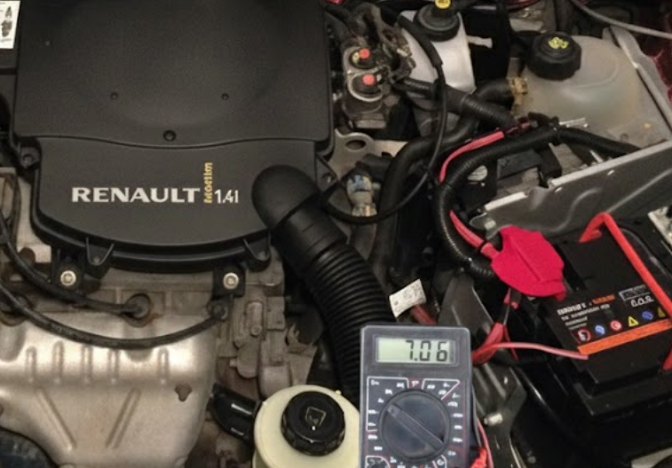 Если мультиметр перевести в режим измерения постоянного напряжения на пределе 20 Вольт, плюсовой щуп мультиметра соединить с клеммой аккумулятора, а минусовой опустить непосредственно в бачок с тормозной жидкостью прибор показывает определённое значение. По задумке это число можно использовать как ориентир содержания влаги в жидкости. Например, у меня показало 7,06.