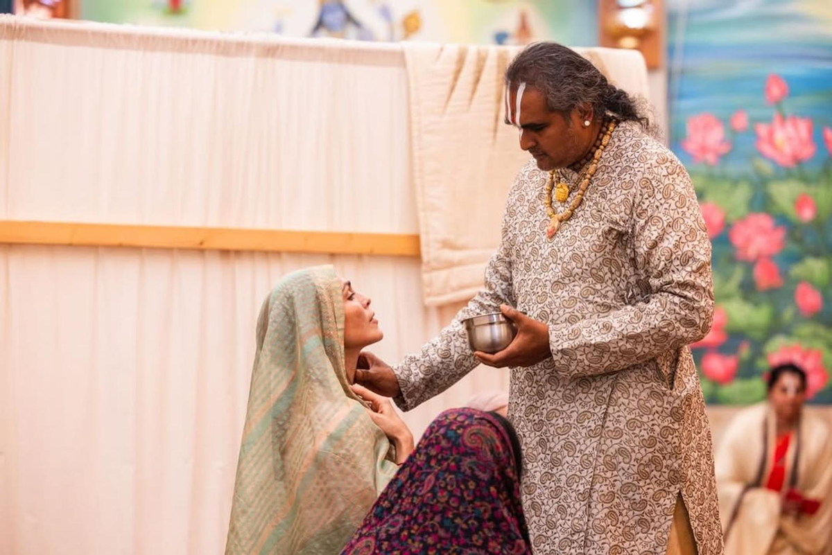 31 декабря 2025 года. В ашраме в Германии учитель объявляет: пятеро человек получат статус грихастха — "монахи в миру". Семейные люди с особыми духовными полномочиями.
