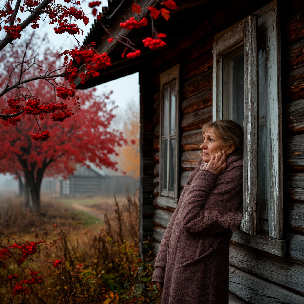 Осень в том году была золотая. Рябины горели красными гроздьями, и Людмила часами сидела на крыльце, глядя на них.