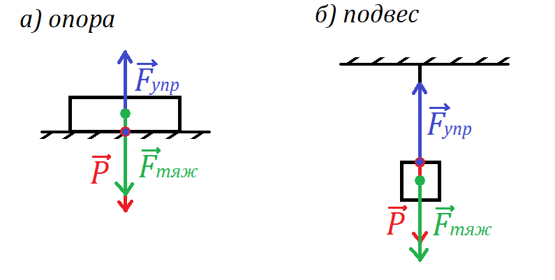 Всем физический привет! Этот урок мне бы хотелось начать с проблемы заблуждения, в котором живет мир. К сожалению, граница между понятиями "масса" и "вес" размылись, и часто я вижу возмущение среди подопечных, почему сказанное ими не было оценено как верное... Мне радостно видеть, когда на пачке гречки или в каталоге автомобилей употреблено слово "масса", а рядом значение в "кг". Это правильно - именно масса измеряется в килограммах, а не вес. А почему, мы сегодня разберемся. Начнем с определения. Весом тела называется сила, с которой тело действует на опору или подвес. Весом тело обладает только в двух случаях: если тело на что-то опирается или на чем-то висит. Если под вами пол или сидение стула, то поздравляю, вы "обладаете" весом! Вес обозначается латинской буквой Р, как и любая другая сила, измеряется в ньютонах (Н). Если в задаче необходимо обозначить вес тела, то над буквой Р ставится знак вектора. Рассмотрим оба положения тела. Важное замечание: тела находятся в состоянии по