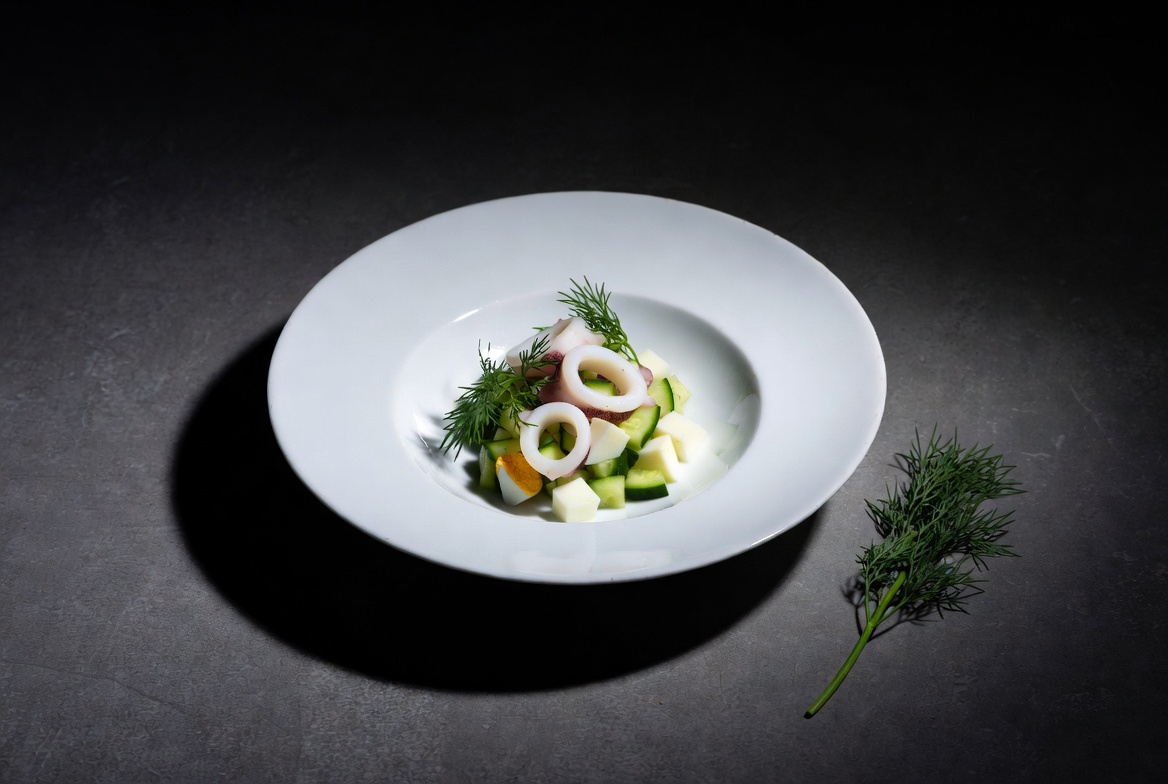 Для меня это всегда воспоминание о бабушкиной кухне поздней осенью. За окном – промозглая, серая муть, ветер гоняет по двору последние жалкие листья, а внутри – царство тепла и света. Трещит, потрескивает пламя в печке, на столе – груда луковой шелухи, золотистой и шуршащей, для покраски пасхальных яиц (хотя до Пасхи еще далеко, но процесс сам по себе уже успокаивал душу). И главное – запах. Сложный, многослойный, интригующий. Свежий, чуть металлический, будто морской бриз, смешанный с мягким ароматом вареных яиц и остро-сочной ноткой только что нарезанного огурца. Бабушка готовила «морской» салат. Не праздничный, не парадный, а именно что для души, для такого вот тихого семейного вечера. С кальмарами.