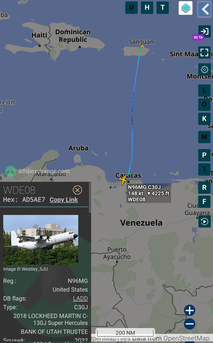 Несколько часов назад в Каракасе совершил посадку LM-100J Super Hercules компании Pallas Aviation, аффилированной с ЦРУ