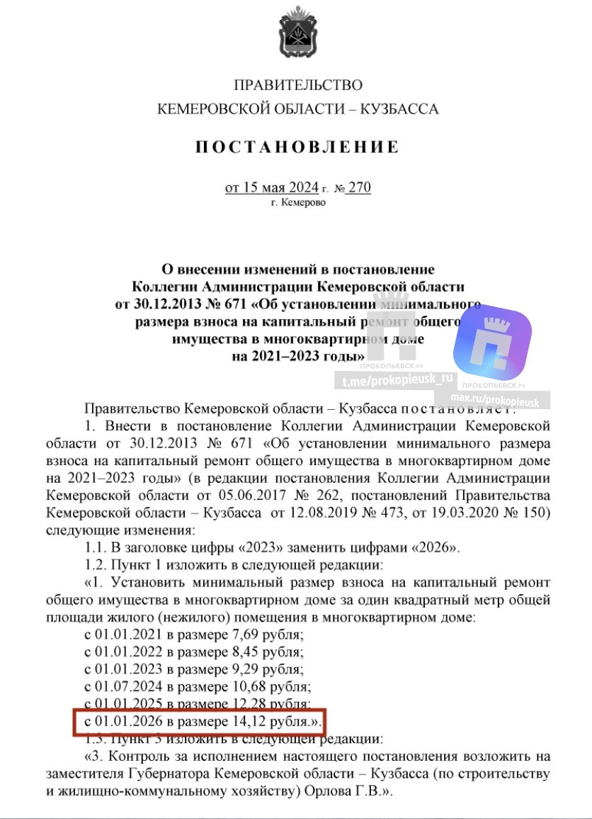 Его рост по сравнению с предыдущим показателем составил 15%: если ранее кузбассовцам, проживающим в многоквартирных домах, за капремонт насчитывали по 12,28 руб./м², то в новых квитанциях суммы увеличатся — Фонд капитального ремонта многоквартирных домов Кузбасса теперь будет брать с собственников квартир по 14,12 рублей/м². ПОДПИШИСЬ 🔴 ПРЕДЛОЖИ Ⓜ МАХ НАШ