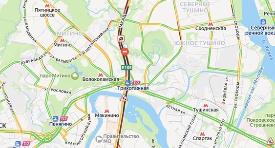 На внутренней стороне МКАД от 71-го до 67-го километра и на внешней от 69-го километра движение встало – сервис «Яндекс Карты» отметил эти участки черным цветом.