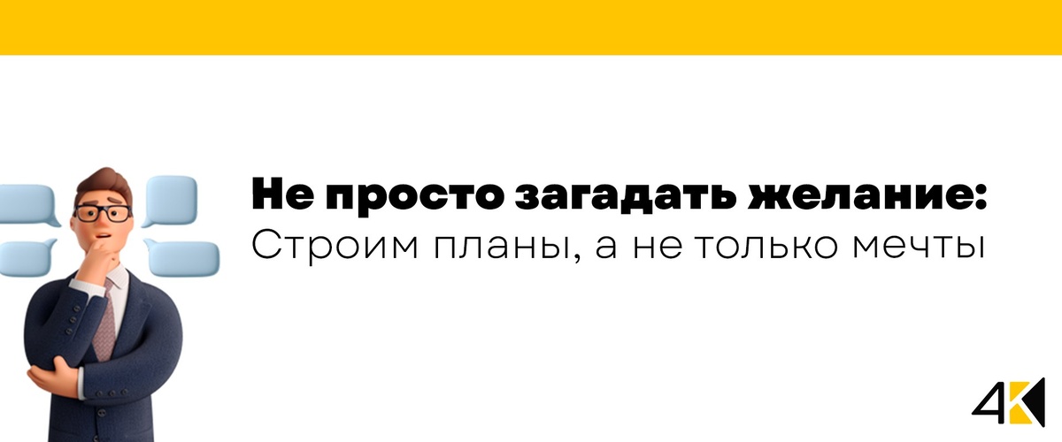 Система вместо мечты 🗓 Мотивация кончится 15 января. Что дальше? СИСТЕМА. 🟡Разбей большую цель на ежемесячные задачи. 🟡Выдели 1 час в неделю на цель. Внеси в календарь как встречу с собой. 🟡Найди среду для роста. 50% успеха — это окружение, где можно пробовать, ошибаться и расти. ❗️Лайфхак: Говори не «Я хочу снимать», а «Я — человек, который снимает». И каждый день делай хоть что-то для этого нового «Я». В «4К» как раз такая среда. Следи за нашими анонсами!