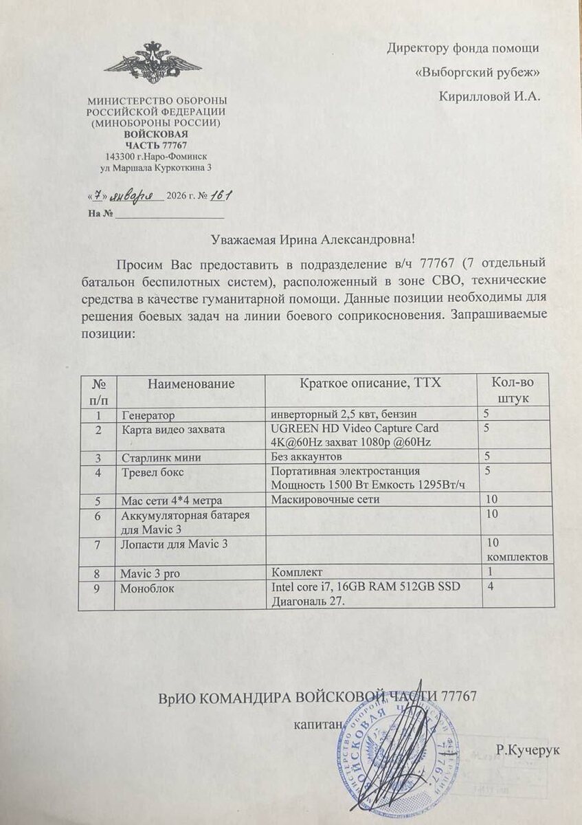 ! Уже почти четыре года идёт специальная военная операция и наверное я бы никогда не подумала, что это коснется меня или моих Близких… Ко мне за помощью обратился родственник, который сейчас находится на передовой. Ему и его боевым товарищам критически нужна конкретная гуманитарная помощь: тепловизоры, рации, квадрокоптеры. Я очень хочу помочь, но, честно говоря, в этом вопросе я как слепой котёнок — не знаю, где надёжно и быстро купить именно то, что нужно, и как это правильно доставить. Поэтому я обратилась за советом и помощью к своей постоянной клиентке и уже можно сказать подруге, которая состоит в фонде «Выборгский рубеж» (https://t.me/vyborgrubezh). Они с первого дня работают с заявками от бойцов и знают в этом толк. Они откликнулись и готовы взять на себя всю организацию: закупку по лучшим ценам у поставщиков и логистику. Мы открываем сбор на большую партию гуманитарки. Общая сумма, которую нужно собрать, — 1 413 000 рублей. Сама, конечно же, я тоже приму активное учас