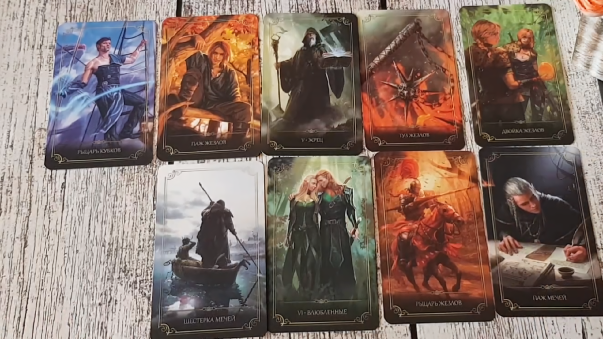 Это женщина. Старше его. Опытнее. И — опаснее. Она — как змея в шёлковом платье. Двойка Мечей — она не говорит прямо, она молчит, но её молчание режет глубже слов. Она — серый кардинал, тень за его спиной, та, кто знает, где у него слабые места. Туз Кубков говорит: она любит его — или думает, что любит. Для неё он — бокал вина, последний глоток в пустыне. Она не хочет его терять, потому что потеря означает конец её власти. И она борется. Семёрка Жезлов — это крик: «Он мой! Не троньте!» Она готова разнести всех, кто посмеет встать у неё на пути. Она коварна, хитра, умеет играть на слабостях.