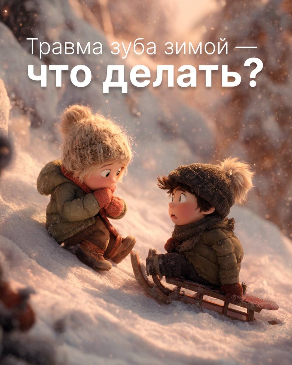 🆘❄️Зимой риск травм зубов у детей действительно выше: лед, горки, активные игры