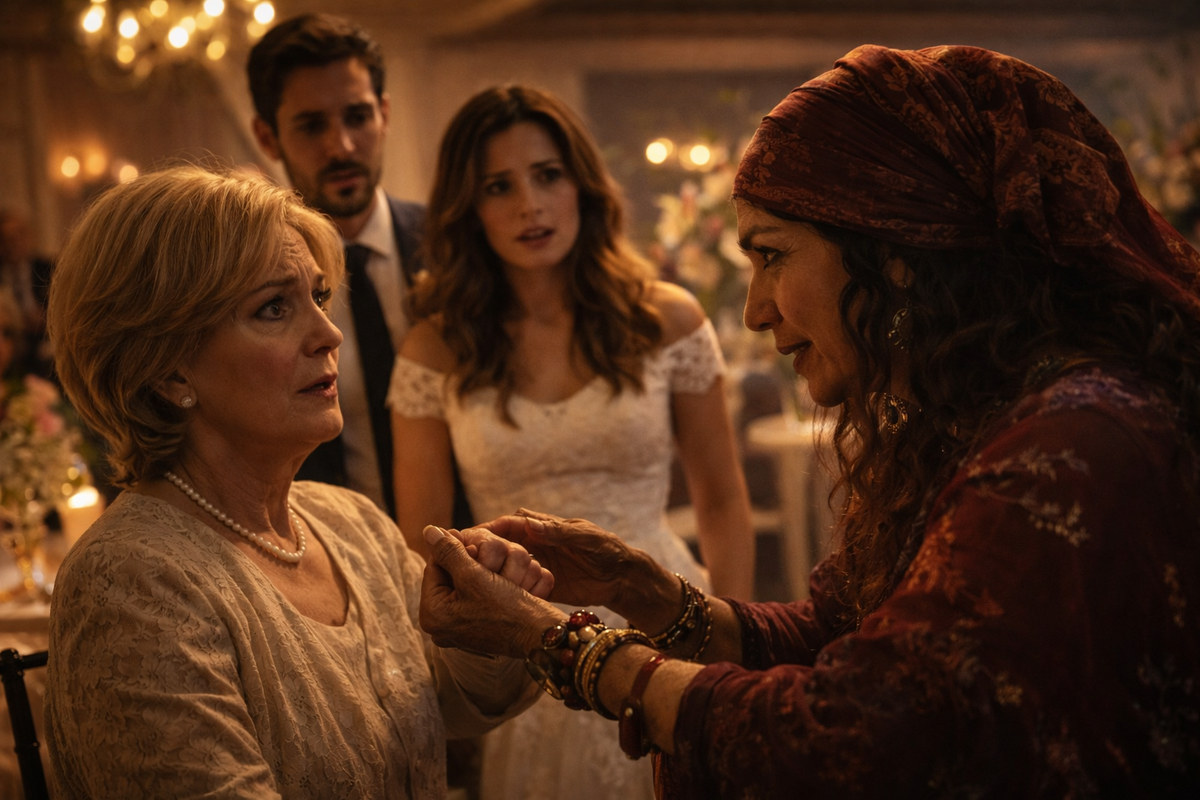 Идея показалась всем безобидной: мол, развлечём гостей, добавим колорита, пусть цыганка раскинет карты, скажет пару туманных фраз — и все посмеются. Невеста, Лена, сама предложила это, смеясь, не веря ни в судьбу, ни в знаки. Свадьба шла шумно и красиво. Белые скатерти, звон бокалов, музыка, от которой дрожали окна ресторана. Гости расслабились, лица раскраснелись, смех стал громче и свободнее. Гадалка появилась ближе к вечеру — словно по сценарию. Яркая юбка, тяжёлые серьги, взгляд тёмный и цепкий. Сначала всё шло именно так, как ожидали. Она подходила к гостям, брала ладони, говорила общие фразы: «дорога впереди», «будет выбор», «не всё сразу». Люди улыбались, кто-то шутил, кто-то делал вид, что слушает всерьёз. Лена наблюдала со стороны, довольная. Всё получилось. Шутка удалась. А потом цыганка вдруг остановилась. Она стояла у стола родителей жениха и смотрела на свекровь. Долго. Слишком долго для безобидного номера. Музыка играла, но будто стала тише. Гадалка медленно подошла ближе