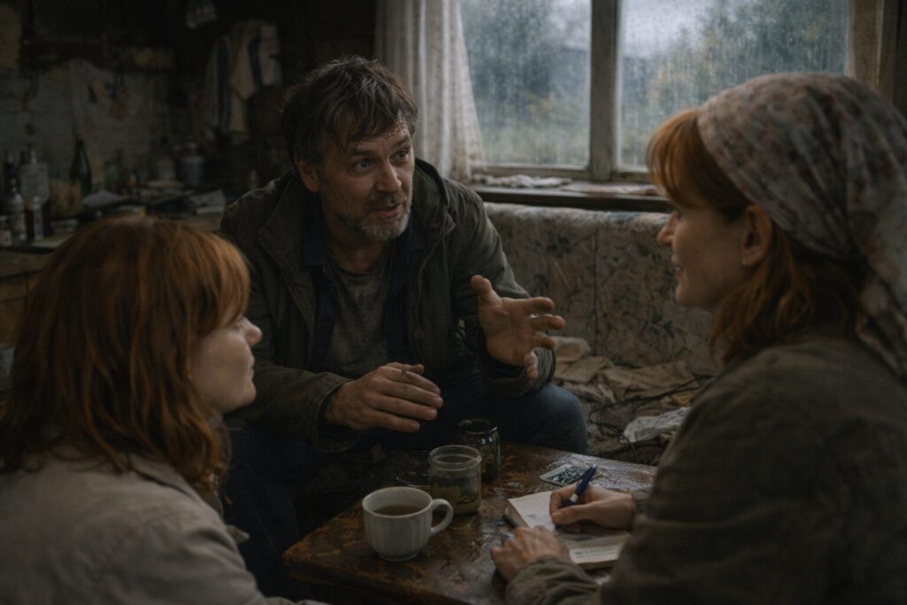 Он долго молчал. Смотрел в окно, где серое небо сливалось с серой землёй. Потом заговорил — медленно, тяжело, словно каждое слово давалось с трудом.