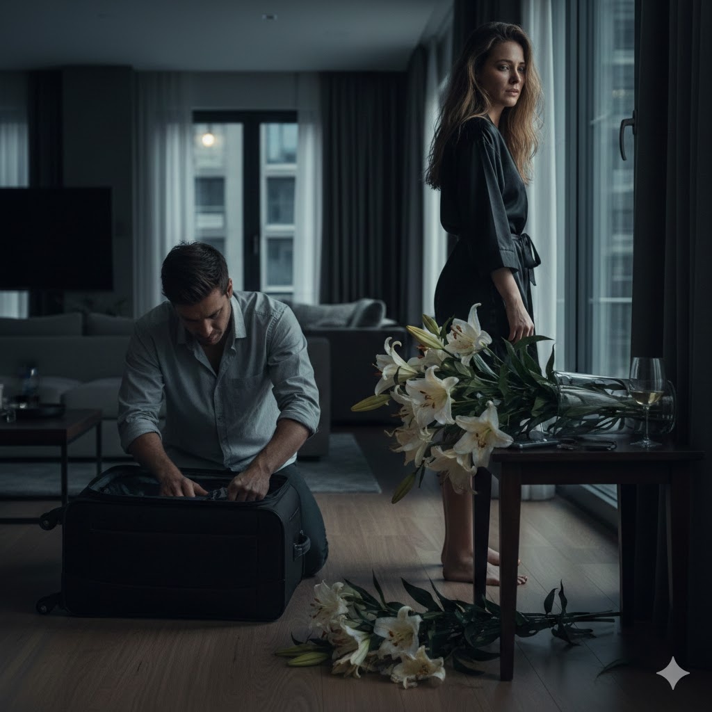 Когда она вошла в квартиру, аромат лилий — тяжелый, сладкий, почти дурманящий — заполнил всё пространство. Марк стоял на кухне, наливая воду.