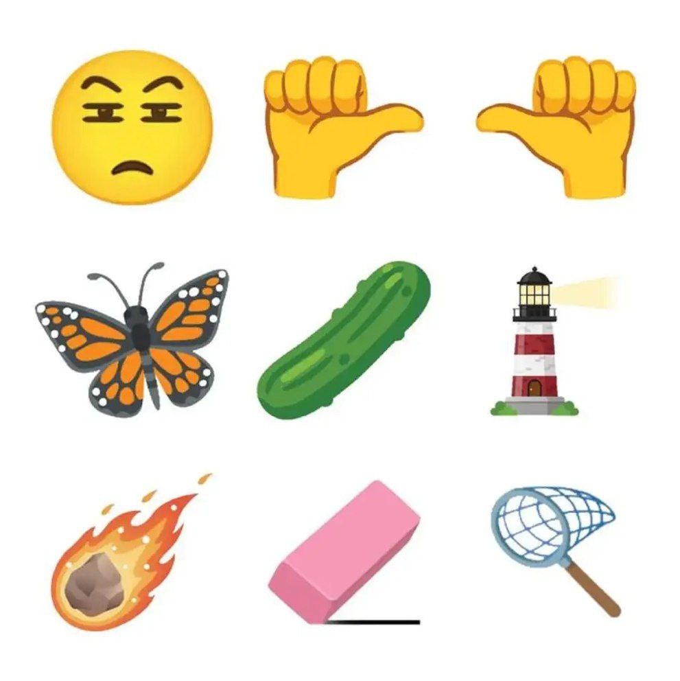 Консорциум Unicode одобрил новые значки, среди которых — прищуренное лицо, огурец, метеор, жесты с большими пальцами влево и вправо, бабочка-монарх, маяк, ластик и сачок Добавление этих эмодзи в операционные системы планируется к осени 2026 года