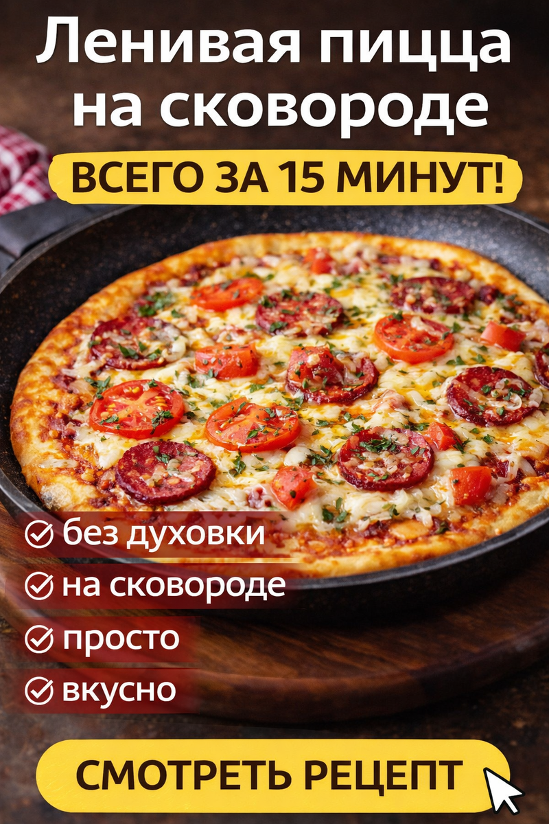 Иногда так хочется пиццы, но совсем нет времени возиться с тестом и разогревать духовку. Знакомо? Тогда этот рецепт — прямо спасение. Ленивая пицца на сковороде готовится всего за 15–20 минут, а на вкус — как домашняя: мягкая сверху, румяная снизу и очень сочная.