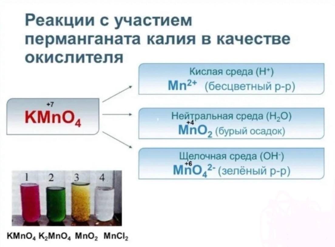 🧡🧡🧡🧡🧡🧡🧡 🤔 А вы знали, что в этой реакции щелочь «исчезает»? | ОВР с KMnO₄ На курсе «ЕГЭ с нуля» мы с ребятами детально разобрали все ОВР с перманганатом и хромом. Сейчас предлагаю вашему вниманию одну из таких реакций с «подводными камнями». «К щелочному раствору перманганата калия добавили иодид калия». Кажется, всё просто: KMnO₄ + KI + KOH → ... Но здесь есть хитрость! 🎯 ✅ Правильный ответ без KOH в исходных веществах: 2KMnO₄ + 2KI → 2K₂MnO₄ + I₂ (Среда — щелочная, но она не участвует в балансе!) 🧠 В чем подвох? 1. В щелочи Mn⁺⁷ всегда → Mn⁺⁶ (K₂MnO₄). 2. I⁻ → I₂⁰. 3. Ставим коэффициенты по электронному балансу — и оказывается, что для уравнивания атомов сама щелочь (KOH) в уравнение не входит! Её указывают над стрелкой как условие. 🔥 Запомните: То же самое — с бромидами и сульфидами в щелочной среде. Это классическая ловушка. Если этот нюанс стал для вас открытием — значит, в подготовке есть пробелы, которые нужно закрыть. На курсе мы «прожигаем» все такие неоче