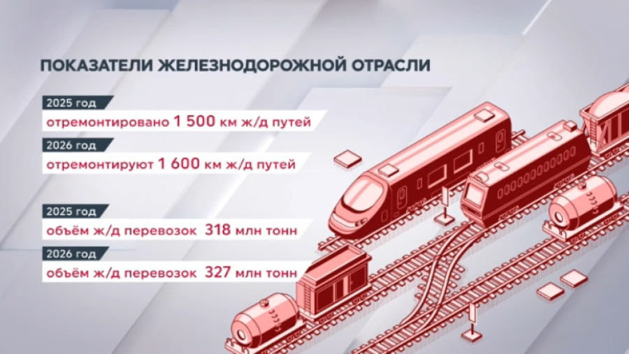 Чуть больше 1,5 тысяч километров железных дорог в этом году отремонтируют в Казахстане, сообщает «24KZ». В то же время в прошлом году железнодорожная отрасль достигла рекордных показателей. Так, в 2025-м было модернизировано 1,5 тысячи километров железных дорог. Кроме того, объём перевозок достиг порядка 318 млн тонн. В текущем году объём перевозок прогнозируется на уровне 327 млн тонн. Таким образом, железнодорожная отрасль вновь выходит на рекордные показатели. Помимо этого, планируется поставка 236 локомотивов, более 1400 грузовых и 191 современного пассажирского вагона. Это позволит значительно повысить надёжность и качество транспортных услуг.