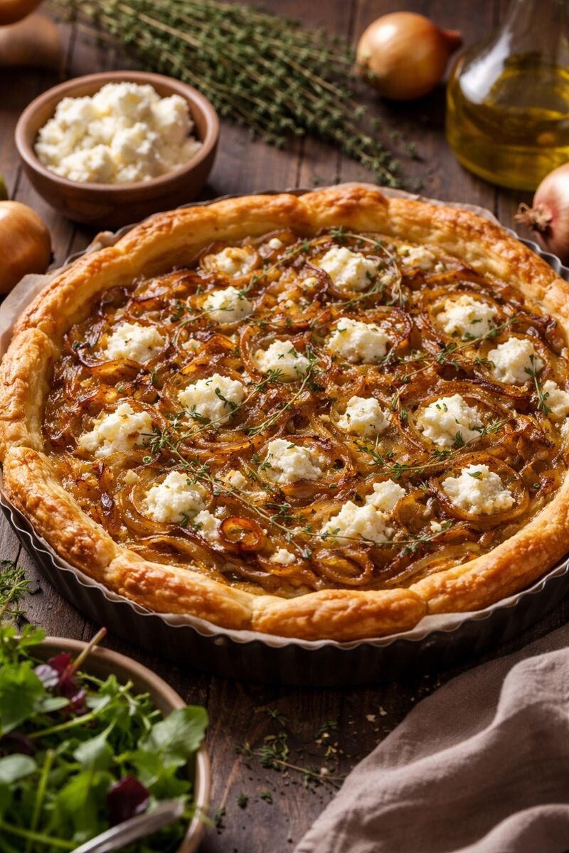 Луковый пирог с козьим сыром, который покоряет гостей с первого кусочка