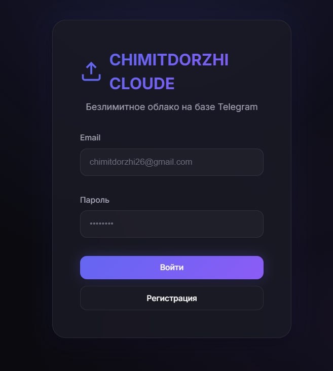 : CHIMITDORZHI CLOUDE — превращаем Telegram в ваше личное облако для файлов Зачем платить за облачные хранилища, если у вас уже есть Telegram? Что это дает: Загружайте сколько угодно файлов — фото, видео, документы Всё хранится прямо в Telegram, доступ с любого устройства Не нужно покупать подписки на Google Drive или Яндекс.Диск Программа весит всего пару мегабайт — не займет места на телефоне Безопасно: Ваши файлы видите только вы Открытый код — никаких скрытых функций Всё шифруется как в обычном Telegram Просто: Установил → подключил Telegram → загружай файлы. Всё!
