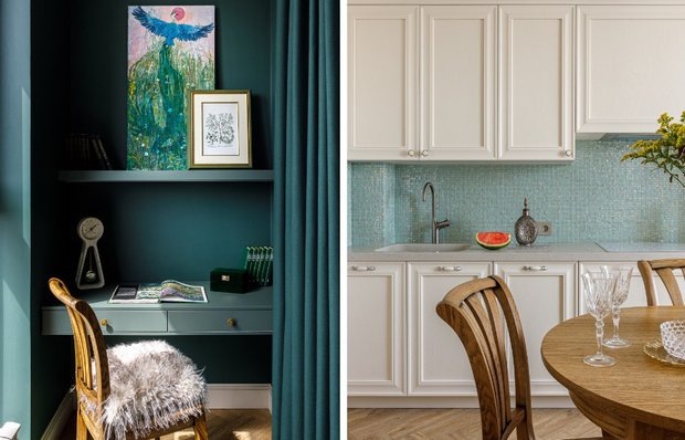 Продуманные системы хранения помогли сохранить уют, не перегружая интерьер деталями Двушку площадью 64 м² в Уфе дизайнер Лилия Усманова оформляла для семьи с двумя детьми, переехавшей из небольшого башкирского села. В проекте важно было не только создать выразительный интерьер, но и грамотно организовать хранение — так, чтобы пространство оставалось удобным для повседневной жизни и не теряло ощущения домашней атмосферы. В результате системы хранения здесь работают ненавязчиво: они встроены в планировку, поддерживают стиль фьюжн и не перетягивают на себя внимание. Прихожая организована как функциональная зона, а не проходное пространство. Встроенные шкафы позволяют убрать верхнюю одежду, обувь и сезонные вещи, сохраняя порядок. За счет лаконичных фасадов хранение не дробит пространство и выглядит как часть интерьера. В кухне-столовой системы хранения выстроены по принципу цельного блока: шкафы не выглядят перегруженными за счет светлых фасадов и спокойной цветовой гаммы. Это позволяет р