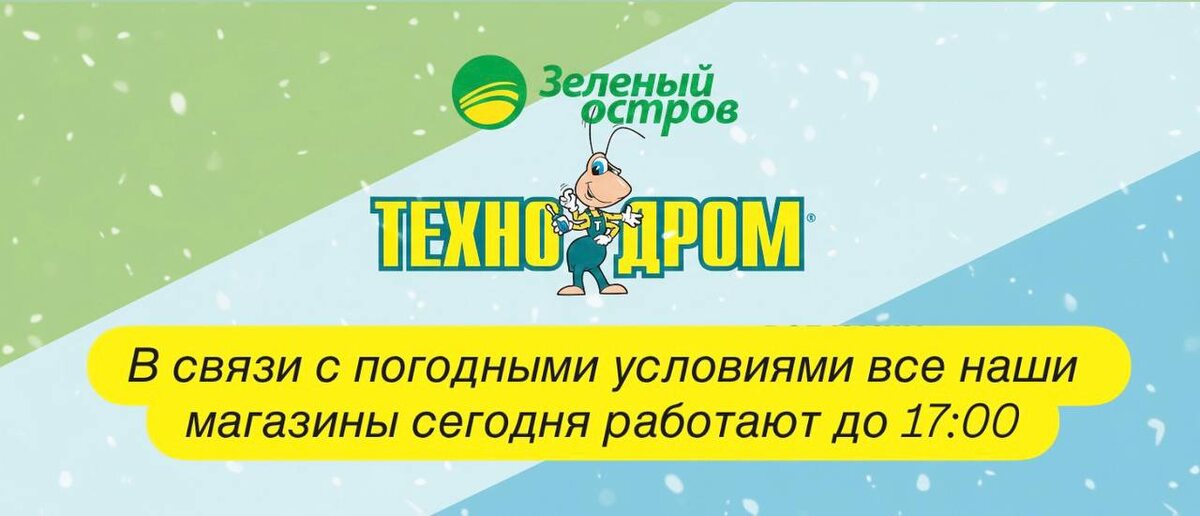 В связи с погодными условиями все наши магазины Технодром и Зелёный Остров работают до 17:00✅