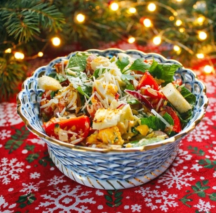 ИНГРЕДИЕНТЫ (3 порции): ОСНОВА: ✅ Листья салата (ромен, айсберг, латук или руккола) — 6 листьев ✅ Бекон — 100 г ✅ Яйца — 3 шт. ✅ Помидоры (черри — 6 шт. или обычные — 2 шт.) ✅ Сыр пармезан — 70 г ✅ Лук-шалот или красный — 1/2 шт. ✅ Белый хлеб — 30 г ЗАПРАВКА: ✅ Оливковое масло — 4 ст. л. ✅ Чеснок — 1 зубчик ✅ Лимонный сок — из 1/2 лимона ✅ Сахар — 1/2 ч. л. ✅ Соль — по вкусу ✅ Чёрный перец — по вкусу ✅ Красный перец — по вкусу ✅ Итальянские травы — по вкусу ПРИГОТОВЛЕНИЕ: 1. Яйца отварить вкрутую, остудить, очистить и нарезать кубиками. 2. Бекон нарезать кусочками и обжарить на сухой сковороде до румяности. Выложить на бумажное полотенце. 3. Белый хлеб нарезать кубиками. Обжарить в той же сковороде до золотистой корочки или подсушить в духовке при 180°C 5–10 минут. 4. Листья салата промыть, обсушить и нарвать руками. Переложить в салатницу. 5. Добавить нарезанные яйца, бекон, помидоры (разрезанные пополам или четвертинками), тонко нарезанный лук. 6. Сыр натереть на мелкой тёрке и доб