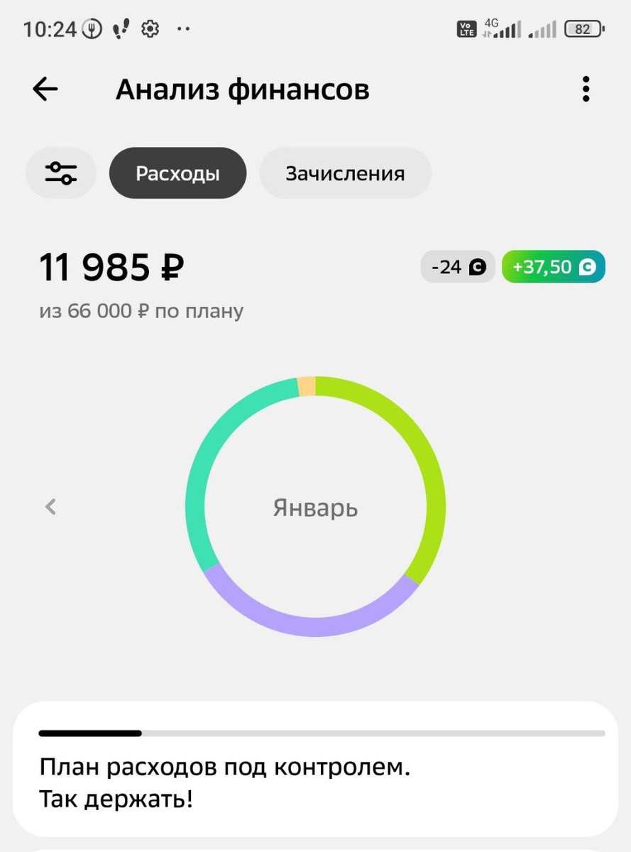 Потрачено в общем: 11985. -Из них: 4230 одежда; -Супермаркеты: 3747, но в эту сумму входит карниз и освежитель воздуха - 980 рублей, а также - 540 рублей шапка. Итого, на продукты в январе потрачено 2527 рублей. ЖКХ, связь - 3733 Подписка Сбер - 275 руб.