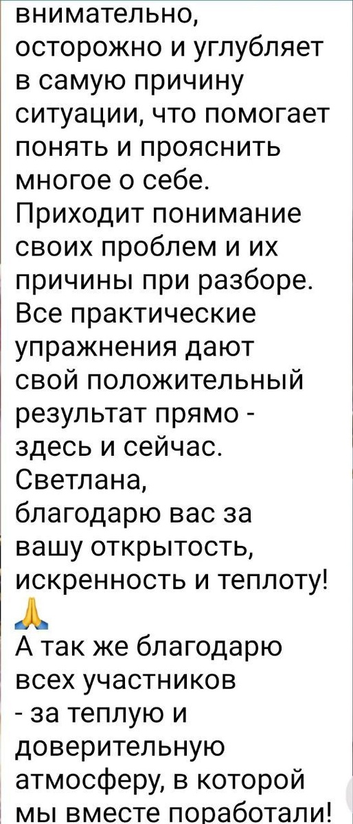 🙈 Дорогие мои, я много общалась с вами в личках по поводу упражнения МАК на тревожность. И я вижу, что причины ваших тревог вот такие: ✔️Страх потери близкого человека ✔️Страх не реализовать свой потенциал ✔️Страх не справиться и не достигнуть поставленных целей ✔️ Страх неизвестности, нет уверенности, что хватит сил адаптироваться к этой реальности. Если вам откликается поставьте 🔥огонек. И вот ко мне пришла такая идея... Я в прошлом году проводила мини-группу по выгоранию. И своими глазами видела, как людям становилось легче. И я совсем не была уверенна, что буду проводить еще раз подобное мероприятие, но сейчас я вижу, что это надо, чтоб вы смогли расслабиться и начать жить спокойно. Тем более, что тревожность забирает ваше здоровье, так появляются: ▶️головные боли ▶️повышенное артериальное давление ▶️бессонница ▶️панические атаки. А 90% проблем с ЖКТ заключается именно в отсутствии чувства безопасности и повышенной тревожности. Так что приняла решение провести бесплатн