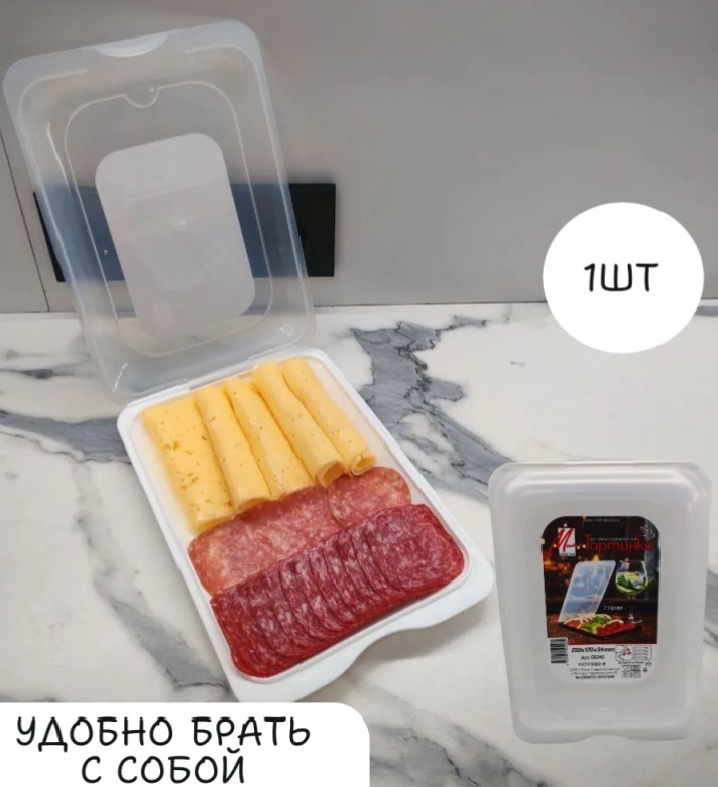 Нашла вот такой удобный контейнер для нарезки. Вечно у нас нарезка хранилась в магазинной упаковке, что было неудобно и неестетично. Этот контейнер занимает мало места, нарезка в нем смотрится красиво. Его можно использовать для сервировки стола - верхняя крышка снимается и тоже может
