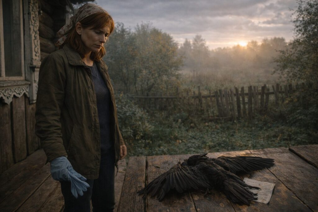 Утром Вера вышла во двор и замерла. На крыльце лежала дохлая ворона. Крылья раскинуты, голова свёрнута набок. Под ней — клочок бумаги.