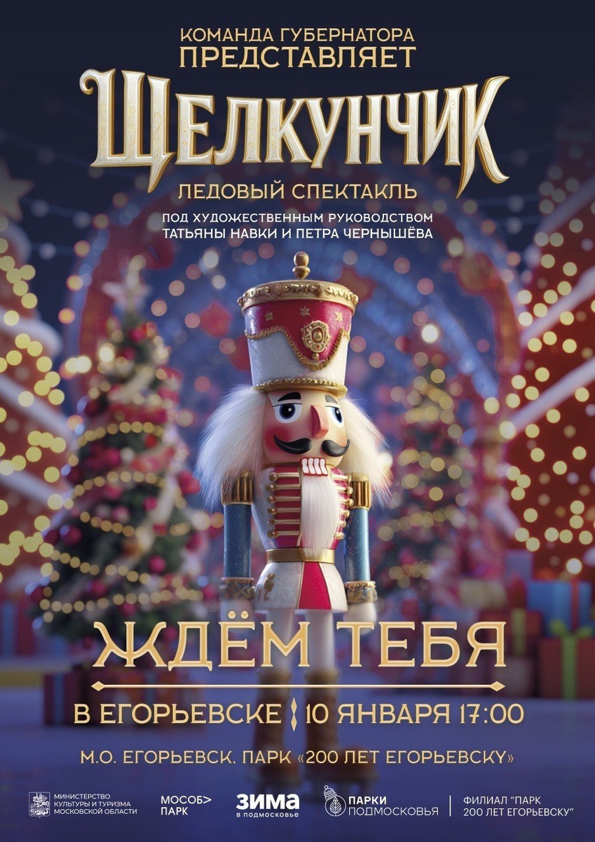 СЕГОДНЯ в 17:00 на катке в парке "200 лет Егорьевску" состоится ледовое представление по сказке Э.Т.А. Гофмана «Щелкунчик» под художественным руководством Татьяны Навки и Петра Чернышева. Для жителей и гостей округа выступят звезды фигурного катания, многократные чемпионы России, Европы и мира, олимпийские чемпионы. Вход бесплатный 0+ Приходите за зимними впечатлениями всей семьей! #подмосковье #НашеПодмосковье #муниципальныйокругЕгорьевск #моЕгорьевск #егорьевскоетелевидение #егорьевскоетв #Егорьевск #администрацияегорьевск