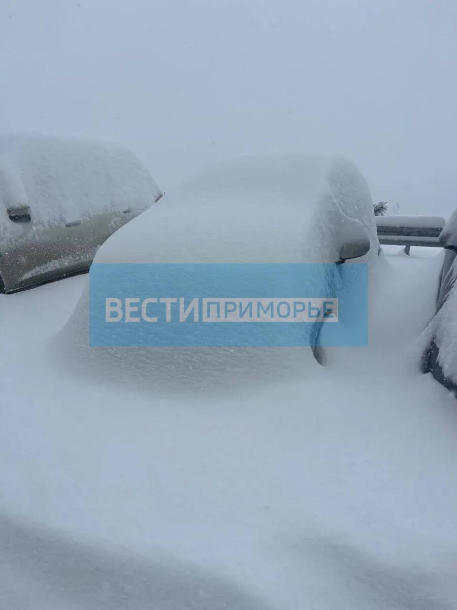 📰Под снег уходят тротуары, лестницы и автомобили. Метель во Владивостоке продолжается.