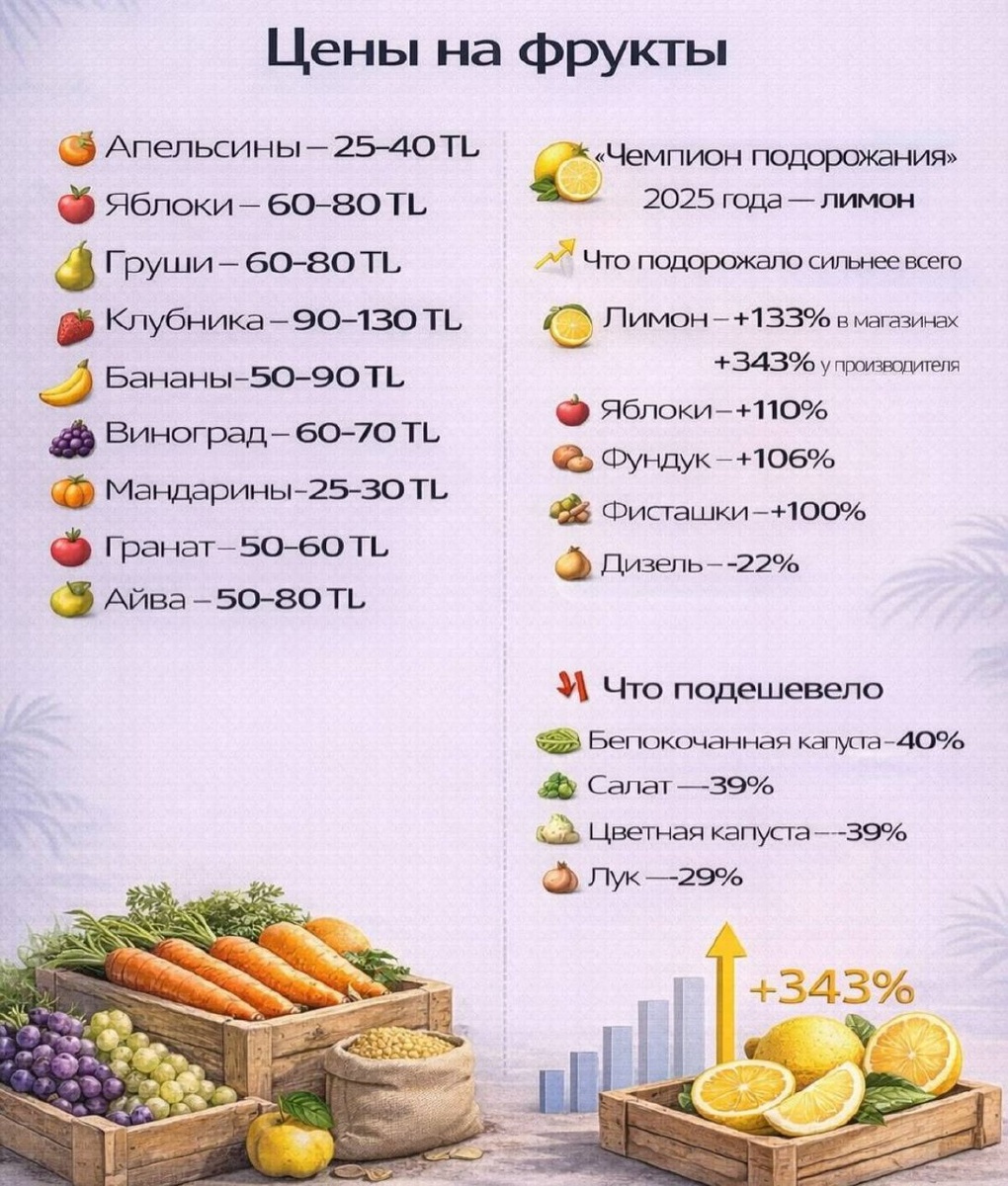 Зарплаты и цены на еду в Турции. Умножьте на 1.85 для цен в рублях.