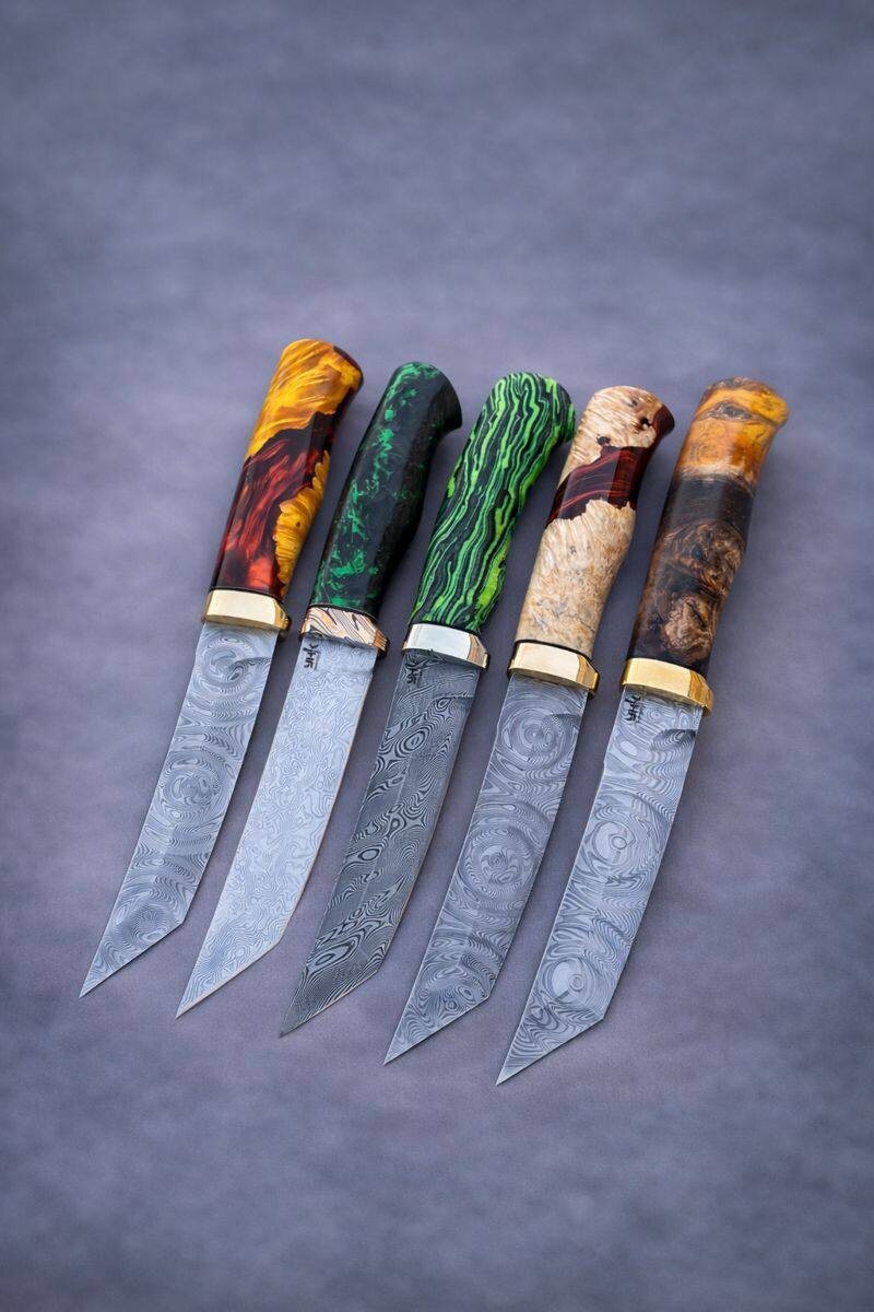 ☀️ Ну что, еще 2 дня отдыхаем и входим снова в рабочий режим на полную мощность 💪🏻 У нас есть много чего вам показать 😉 На фото ножи модели Ронин из нержавеющей дамасской стали 🔥 По рукоятям слева направо : Кап клена и акрил Карбон Микарта Кап клена и акрил Кап тополя А теперь по ТТХ: Длина изделия, 275мм Длина клинка, 144мм Ширина клинка, 28мм Толщина обуха, 3,3мм Твердость стали, 58-59 HRC Для оформления заказа, Вы можете написать в сообщения группы или по номеру +79823222698 ✍️