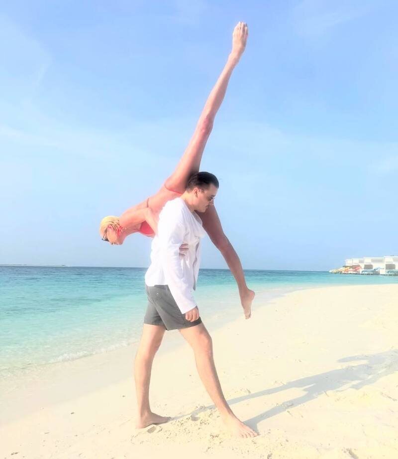 49-летняя балерина Анастасия Волочкова во время отдыха на Мальдивских островах устроила очередную фотосессию на пляже. Для эффектного кадра артистке помог её знакомый — профессиональный танцор Марчел Абаби, с которым она проводит отпуск. Волочкова неоднократно называла Мальдивы своим вторым домом и регулярно выбирает этот курорт для отдыха. В этот раз компанию балерине составил Марчел Абаби. Вместе они активно проводят время и делятся происходящим с подписчиками в социальных сетях. Накануне в личном блоге Анастасии появился новый снимок, на котором она вновь продемонстрировала свой фирменный шпагат. Импровизированное выступление прошло прямо на пляже. Балерина позировала в красном бикини, а её спутник был одет в белую рубашку и шорты. На опубликованном кадре Волочкова забралась на плечи Марчела Абаби и выполнила шпагат. Публикацию Анастасия сопроводила подписью «Выход из океана по-волочковски». Из-за неоднозначной реакции аудитории артистка периодически закрывает комментарии к своим по