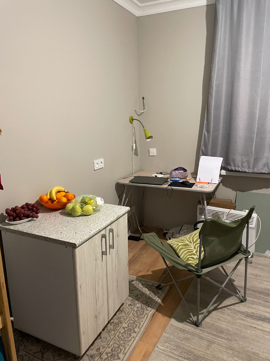 В доме наступил мини-апокалипсис. Многочисленное кухонное нажитое пришлось пихать по обжитым уже комнатам. Обеденную зону организовали в комнате сына, основное хранение в комнате дочери. Посуда, используемая ежедневно, обосновалась в ванной комнате.