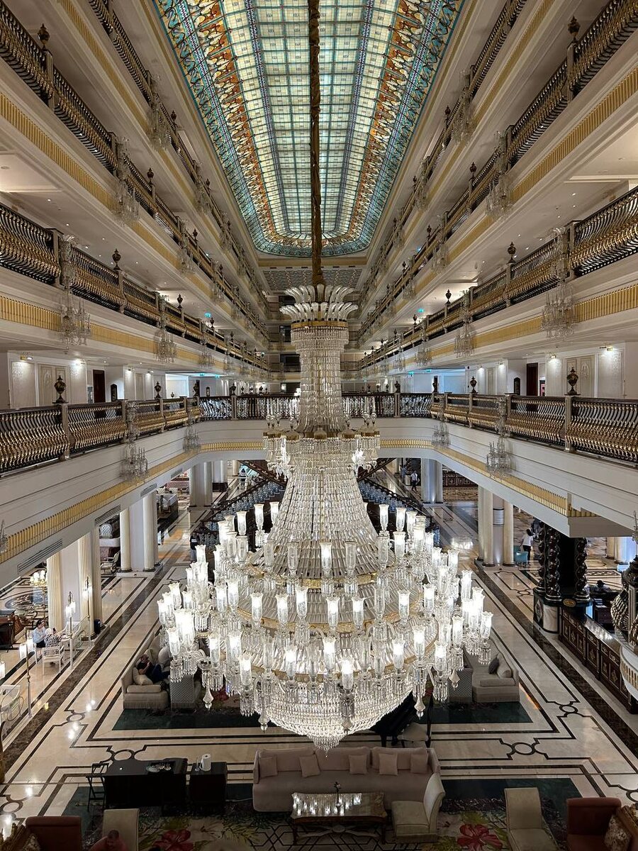 Представьте, вы просыпаетесь в комнате, оформленной в изысканном восточном стиле, спускаетесь на завтрак по хрустальной лестнице, проходите коридор, напоминающий дворец Долмабахче... Роскошь здесь в каждой детали! На строительство отеля было потрачено более 1,5 млрд долларов. Итальянская мебель и мрамор, настоящее сусальное золото, люстры Сваровски весом в 2 тонны каждая, прекрасные витражные потолки в лобби, картины ручной работы, персидские ковры - многие вещи были изготовлены эксклюзивно для этого отеля. Неудивительно, что этот отель считается самым роскошным и необычным на Анталийском побережье. Смотрим туры на 2 взр + ребенок, 6 ночей, с вылетом из: Фото 1 - из Москвы, Фото 2 - из Краснодара, Фото 3 - из Сочи В начале 2026 года было объявлено о смене владельцев - отель переходит под руководство сети Swandor. Думаю, он станет первым премиальным отелем сети. Архитектура отеля напоминает главные достопримечательности Стамбула: мост Галата, старинное здание военного лицея Ку
