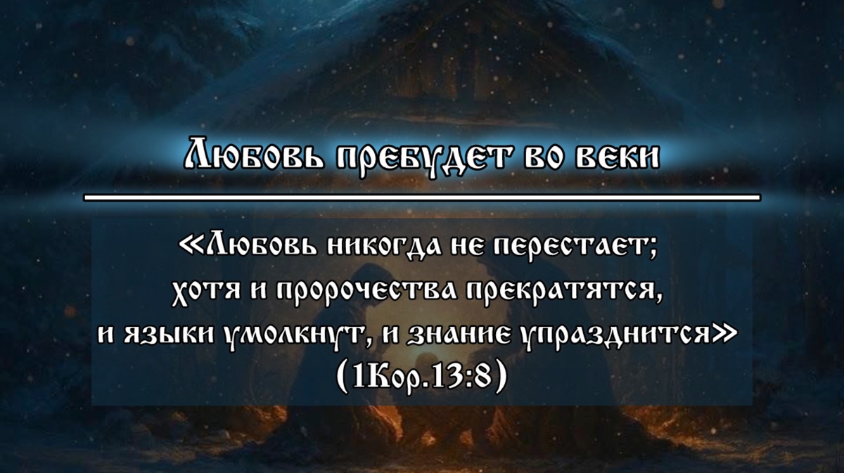📌«Любовь никогда не перестает; хотя и пророчества прекратятся, и языки умолкнут, и знание упразднится» (1Кор. 13:8)