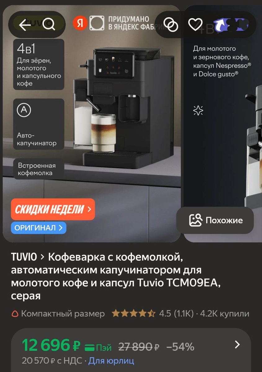 π»ΠΠΎΡΠ΅Π²Π°ΡΠΊΠ° Ρ ΠΊΠΎΡΠ΅ΠΌΠΎΠ»ΠΊΠΎΠΉ, Π°Π²ΡΠΎΠΌΠ°ΡΠΈΡΠ΅ΡΠΊΠΈΠΌ ΠΊΠ°ΠΏΡΡΠΈΠ½Π°ΡΠΎΡΠΎΠΌ Π΄Π»Ρ ΠΌΠΎΠ»ΠΎΡΠΎΠ³ΠΎ ΠΊΠΎΡΠ΅ ΠΈ ΠΊΠ°ΠΏΡΡΠ» Tuvio TCM09EA, ΡΠ΅ΡΠ°Ρ - 12 696Ρ (Ρ.ΠΏΡΠΉ