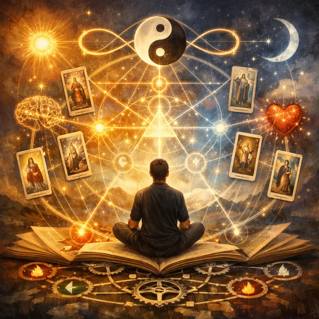 В традиционном подходе к Таро значение карты мыслится как объект. Его можно выучить, запомнить, воспроизвести. Такое мышление удобно, но оно плохо работает с живой реальностью. Интегральный подход предлагает иной сдвиг смысл не находится в карте и не извлекается из неё, он возникает в поле. Поле значений не сумма трактовок, а пространство возможных интерпретаций, ограниченное структурой карты, контекстом вопроса и состоянием аблюдателя. Мы имеем дело не с ответом, а с облаком смысловых потенциалов. Мышление через поле требует отказа от линейной логики «причина — следствие» в пользу системного восприятия. В поле нет одного центра, смысл может сгущаться в разных точках в зависимости от того, где находится внимание. Именно поэтому опытный практик не спешит с формулировкой, а позволяет полю проявить свою конфигурацию. Поле значений — метод мышления, потому что оно учит удерживать неопределённость без утраты структуры. Здесь важно различие не всё возможно, но многое допустимо. Структура ка