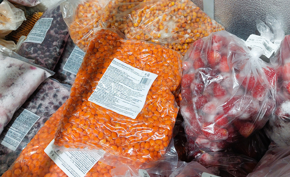 В продаже не менее полезная ягода Голубика, замороженная по цене 422,7 рублей за кг. Клубника замороженная - по цене 222,5 рублей. А также Манго замороженный по цене 304,8 рублей за кг.