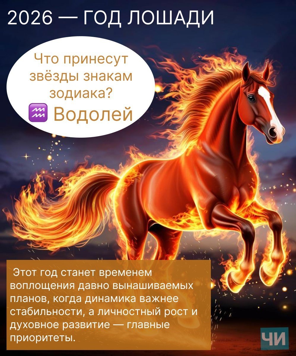? ✨ ♒ Водолей Ключевая тема 2026 года 💫 Важные перемены и баланс между свободой и дисциплиной ⚖️🕊️📋. Время самореализации и стратегического планирования 🎯🧭. Карьера и финансы 💼💰 Благоприятный год для профессионального роста в IT, коммуникациях, творческих и инновационных сферах 🚀💻🎨. Финансовая стабильность возможна при разумном подходе и планировании. Любовь и отношения 💘 Одиноким: судьбоносные встречи возможны с весны до конца лета. В паре: год проверки и укрепления доверия 🤝❤️🔒, гармония наступит летом 🌞💞. ⚠️ Важно помнить: Все астрологические прогнозы носят исключительно развлекательный характер и основаны на эзотерических учениях. Они не являются научным знанием и не должны служить руководством к действию.